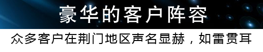 企業(yè)客戶包含荊門九尊食上大酒店、荊沙食品、龍攝影、花嫁喜鋪、洪源大市場、金龍泉集團(tuán)、莫愁湖國際大酒店、九曜物流集團(tuán)、天鵝湖酒店、法之星律師事務(wù)所、假日之旅、九頭鳳花卉等。